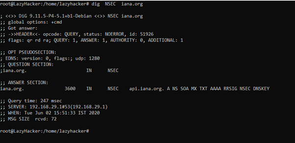 In traditional DNS setup, when we ask DNS for the IP address of a domain that doesn’t exist, it returns an empty answer. So, how we authenticate that domain doesn’t exist since there is no message to sign. The fix for this issue was to add NSEC and NSEC3 record types that explicitly tell a DNS resolver that a given zone does not exist.