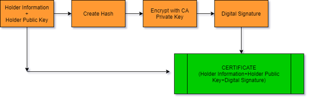 - The certificate authority verifies the data provided by the Website holder then builds the certificate and finally digitally signs it for the holder. A certificate is a document that contains necessary information about the website holder like the holder public key, expiration date, name of the certificate holder, the digital signature of the certificate-issuing authority.