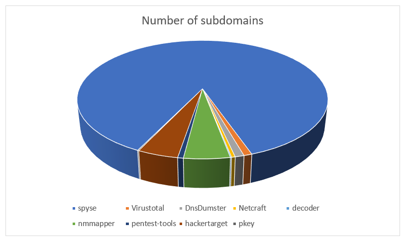 The subdomains number mentioned in pie-chart were not validated, so it may be possible that these subdomains are false positive, but you can validate by using “massdns” or any other tool that resolves subdomains.